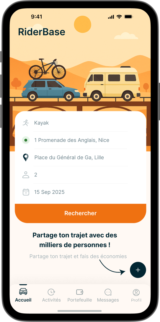 Rejoins des milliers de passionnés de plein air qui utilisent déjà RiderBase pour partager leurs trajets, économiser et protéger l’environnement.