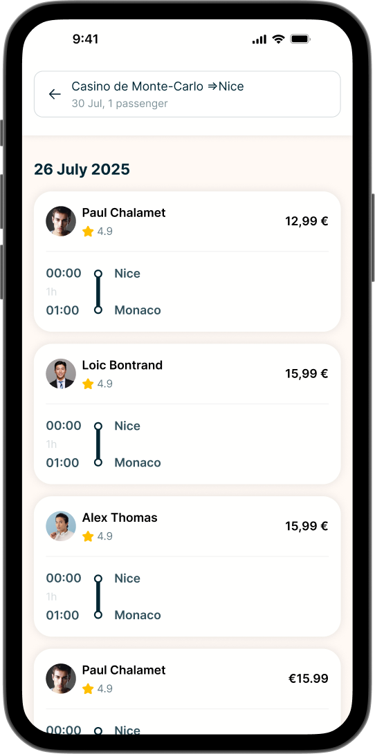 Publie ton trajet en quelques secondes avec ta destination, l’heure et les places disponibles.